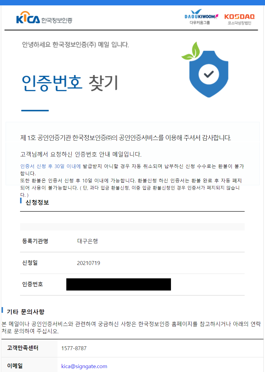 대구은행 환불은 인증서 유효기간내 5회까지 환급가능하다고합니다. 1년에 1~2번 쓸까말까한거 돈아까우니 환불받는건데 5번까지 받을꺼면.. 4400원내고 쓰는것도 괜찮을거 같습니다.