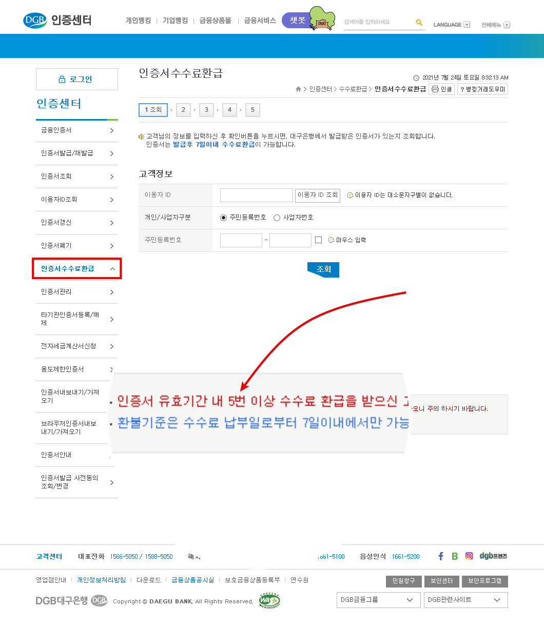 대구은행 범용인증서 환급받는 방법